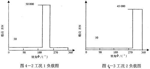 現(xiàn)假設(shè)有兩種運(yùn)行工況,其負(fù)載分別如圖4-2、圖4-3所示。通過(guò)兩種具體沖壓載荷情況來(lái)分析柔性速度補(bǔ)償裝置的補(bǔ)償性能。