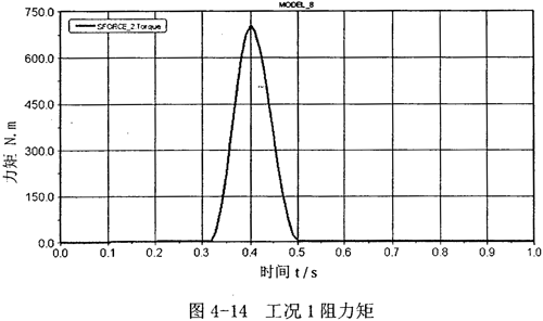 上述工況下,電機(jī)力矩和負(fù)載力矩的變化如圖4-13,圖4-14: