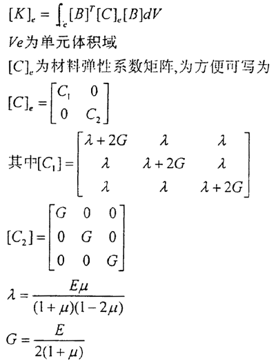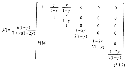 對各項(xiàng)同性材料而言,彈性矩陣[C]為: