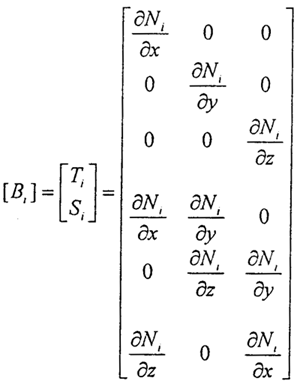 [B]為應(yīng)變矩陣,其中第i個子矩陣為