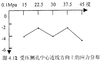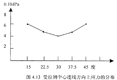 在疊片受拉側(cè)沿兩螺栓孔中心連線的方向上,應(yīng)力的計(jì)算值如圖4.12所示: