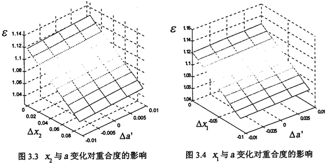 從圖3.3、3.4明顯看出中心距變化對(duì)重合度的影響程度明顯小于變位系數(shù)變化對(duì)重合度的影響程度。