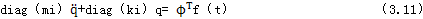 對式(3.22)我們用式(3.10)將其轉(zhuǎn)化到實模態(tài)坐標(biāo)系里,就可求解Ⅱ子模型振動系統(tǒng)的固有模態(tài)參數(shù)。