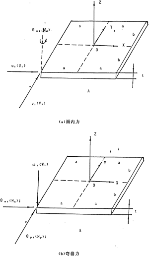平面殼元一般產(chǎn)生彎曲和面內(nèi)兩種變形,根據(jù)二者不干涉的假定,我們在分析時可分別處理之。