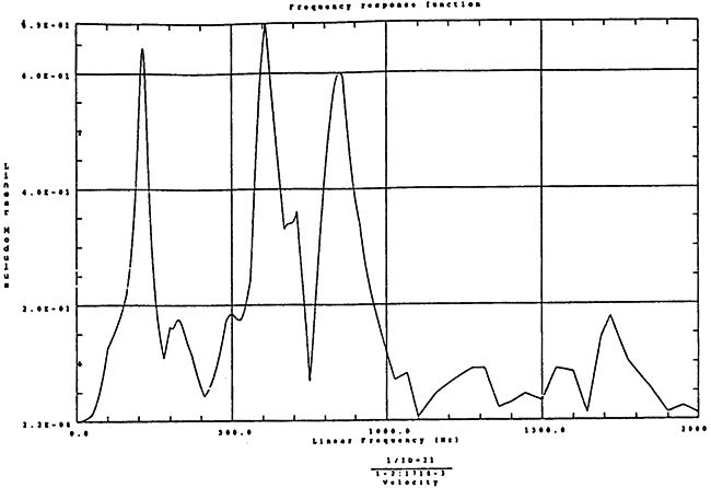 在第三章中我們已建立了三環(huán)減速器箱體的理論模型,在第四章中我們又計算了各種工況下,Ⅰ子模型對Ⅱ子模的激勵X(ω)的大小,這樣我們就可以使用SUN工作站上I—DEAS軟件中動態(tài)分析軟件來計算Ⅱ子模型表面的振動速度。