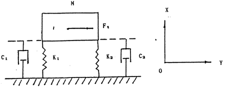 如圖7-3示,三環(huán)減速器由于受內(nèi)部激勵源的激勵而在y向產(chǎn)生較大的振動,為了減小這種振動的危害,可采取隔振措施,以減小其對基礎(chǔ)的影響,如圖7-3示,在三環(huán)減速器與基座的接觸面之間增加吸振或阻尼元件,以減不止其振動對基礎(chǔ)的影響。
