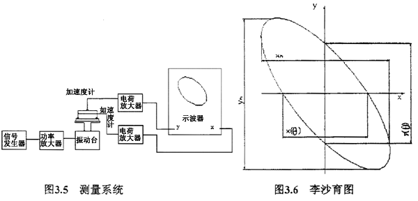 當(dāng)被測的阻尼較大時,幅頻性曲線和峰值變得不明顯或甚至不出現(xiàn),這時可用李沙育圖法。該法的測量系統(tǒng)3.5所示