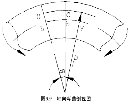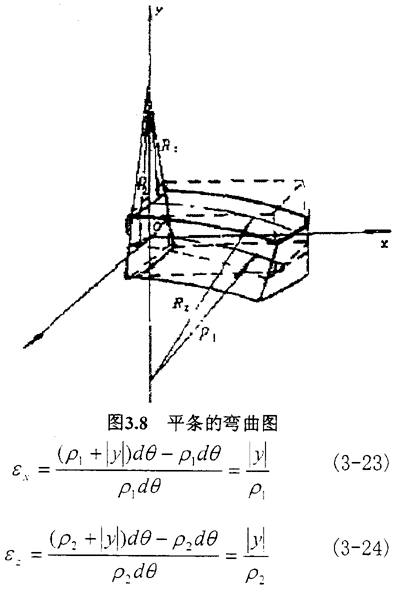 如下圖3.8所示,設(shè)ρ1表示試件中曲面與xoy面相平行的曲率半徑,ρ2表示試件中曲面與yoz面相平行的曲率半徑,試件在純彎曲時沿X軸、Z軸的線應(yīng)變?yōu)?/p>