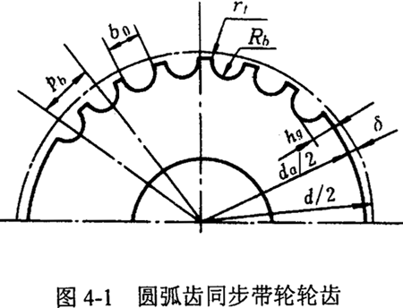 2.同步帶輪的設(shè)計(jì) 與同步帶相對(duì)應(yīng)的帶輪的型號(hào):5M。節(jié)距pb=5,小帶輪的齒數(shù)Z01=40,大帶輪的齒數(shù)Z02=80,帶輪的其它參數(shù)見表4-1和圖4-1。