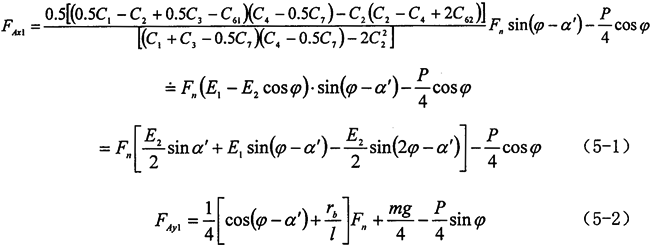 對(duì)于新型三環(huán)減速器,分別c和y坐標(biāo)方向來研究(以A1點(diǎn)為例),由牛頓定律可列出轉(zhuǎn)臂軸承的運(yùn)動(dòng)微分方程。