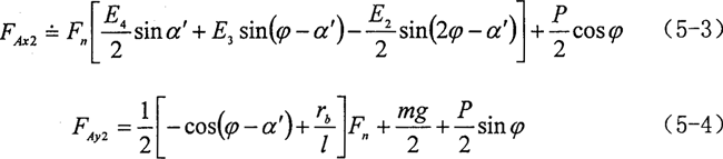 實(shí)際上,減速器的振動(dòng)主要表現(xiàn)為偏心軸支撐軸承的振動(dòng),其振動(dòng)的主要激振力便是轉(zhuǎn)臂軸承處的油膜作用力和偏心軸的慣性力和慣性力,偏心軸的慣性力和慣性力矩對(duì)支撐的作用力為零,由第二章受力分析知,雙軸輸入式三環(huán)減速器支撐軸承所受的x方向激振力為: