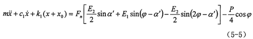 式中 m——轉(zhuǎn)臂軸承質(zhì)量;c1——油膜阻尼系數(shù);k1——油膜剛度。