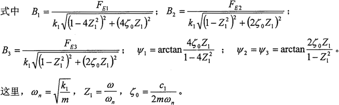 由振動(dòng)理論知,單自由度系統(tǒng)在簡(jiǎn)諧激振力作用下的強(qiáng)迫振動(dòng)的解由以固有頻率ωn為頻率的通解和以ω為頻率的特解組成,由于阻尼的存在,以固有頻率ωn為頻率的運(yùn)動(dòng)將趨于消失,這里只考慮其特解。