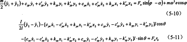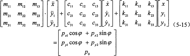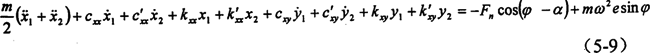 對(duì)于與x坐標(biāo)軸方向相垂直的y方向,也可仿上面過程進(jìn)行推導(dǎo),但由于其激振力不含2φ項(xiàng)其結(jié)果比x坐標(biāo)軸方向要簡(jiǎn)單一些。