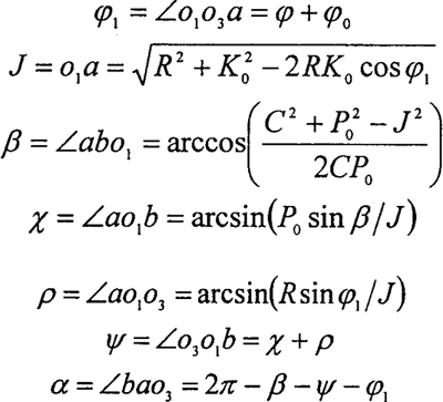 (2)機(jī)架位置角φ0,當(dāng)φ=0時,曲柄與機(jī)架K0所夾的角: