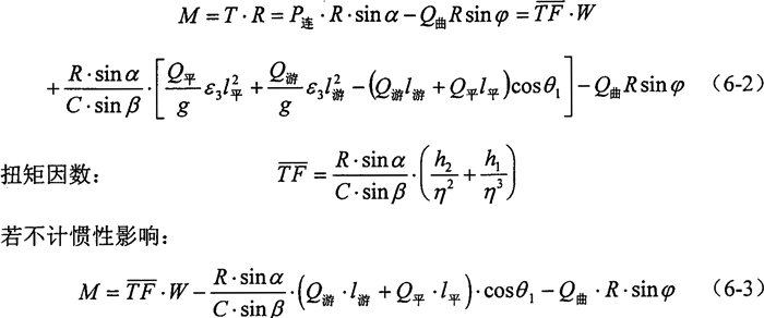 公式(6-2)、(6-3)為雙擺機(jī)減速器曲柄軸扭矩的計算公式。
