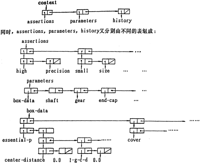 2.上下文的組成:圓柱齒輪減速器設計專家系統(tǒng)的上下文由三部分組成,它們分別是斷言表(ASSAERTIONS)、設計參數(shù)表(PARA METERAS)和進程表(HlSTORY)。