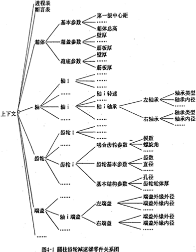 從圖4-1中衍生的圓往齒輪減速器設計專家系統(tǒng)的數(shù)據(jù)間的邏輯組織形式如圖4-2。