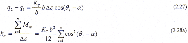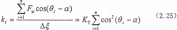 設(shè)在ξ方向給小位移△ξ,見(jiàn)圖2.6,則彈性位移為dsi=△ξ|cos(θi-α)|,產(chǎn)生的彈性力Fsi=KTdsi