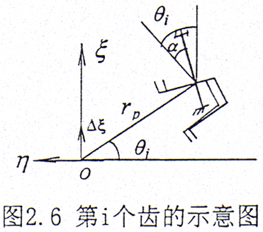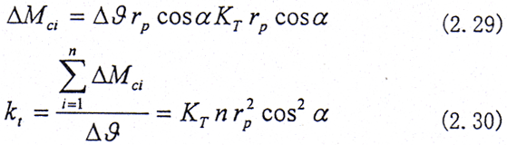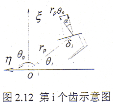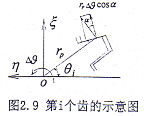 設(shè)繞z方向給一小扭轉(zhuǎn)角△θ,如圖2.9所示,則在第i對(duì)齒對(duì)上產(chǎn)生的扭矩為△Mci,設(shè)rp為節(jié)圓半徑。則有