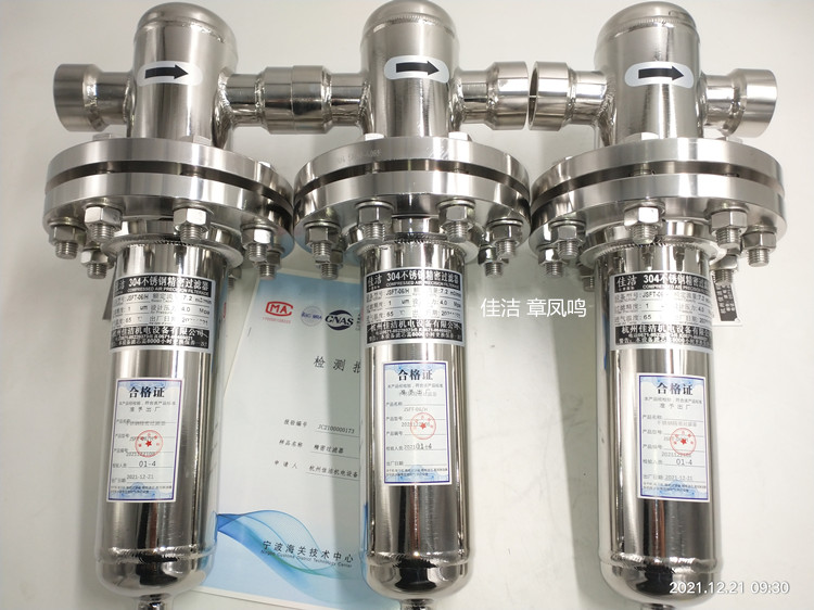 氮氣除塵不銹鋼過濾器 氦氣氮氣過濾器【5】我司的產(chǎn)品為原廠替代件,本公司涉及的其它品牌均無品牌意義,只是作為產(chǎn)品型號參照和客戶選型對照使用。杭州佳潔長期生產(chǎn)食品級不銹鋼過濾器,產(chǎn)品經(jīng)第三方檢測認證,公司生產(chǎn)的濾芯濾材經(jīng)第三方按FDA標準檢測認證,各個微米,顆粒物數(shù)量經(jīng)第三方檢測認證,除塵、除油水、除菌效果經(jīng)第三方檢測認證。杭州佳潔提供不銹鋼過濾器GMP認證、AIB認證材料,幫助企業(yè)順利通過生產(chǎn)認證考核。進入壓縮空氣不銹鋼除菌過濾器的空氣是除濕脫油的空氣,相對濕度應保持70以下,以使過濾效果達到好狀態(tài);過濾效果:耐高溫的蒸氣殺菌,每次20-30分鐘,120次殺菌使用,效果達到99.99.壓縮空氣過濾器故障及處理方法: 故障 原因 處理方法壓損增大1.安裝時壓損過高 1.選型偏小2.濾芯堵塞、哀老3.濾筒積水 2.清洗或更換濾芯4.自動排水器失靈5.進氣雜質(zhì)負載大 3.排除積水 4.清洗或調(diào)換排水器 5.進行預處理微信13777578106聯(lián)系方式:0571-85228373; 15336583523; 594175663@qq.com聯(lián)系人;章鳳鳴