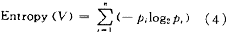 候選刀具集V 的繁雜程度可用信息論中廣泛使用的一個(gè)度量標(biāo)準(zhǔn)一一熵(entropy )來刻畫。由于候選刀具集有n 種不同屬性值,則候選刀具集V 相對(duì)于這n 種候選刀具的熵定義為