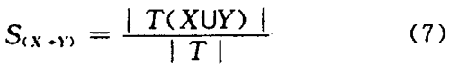 刀具選配理規(guī)則本質(zhì)上是一種關(guān)聯(lián)規(guī)則,即2 個(gè)或多個(gè)變量的取值之間存在某種規(guī)律性。為表示關(guān)聯(lián)規(guī)則挖掘的含義,做如下定義。定義1 :支持度(Support ) s 表示評(píng)判因素X 在所有待挖掘規(guī)則中出現(xiàn)的頻率,關(guān)聯(lián)規(guī)則X Y的支持度S 定義為: